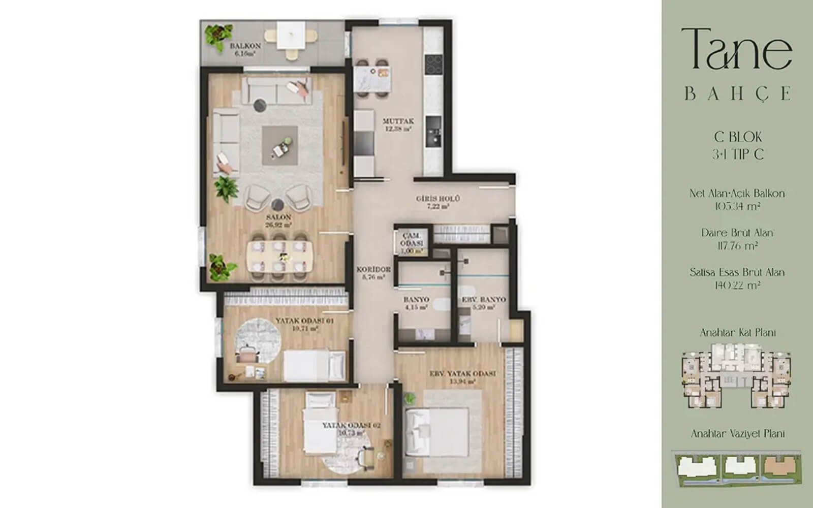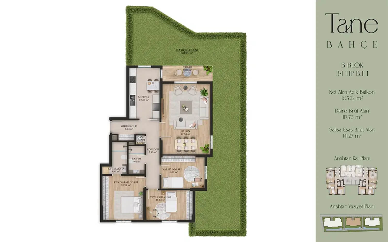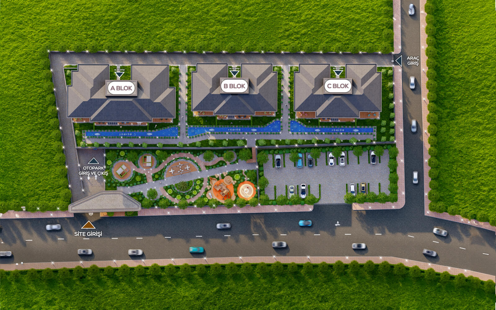 Geniş Peyzaj Alanları: Özlenen komşuluk ilişkilerini canlandıracak geniş peyzaj alanlarıyla donatılmıştır.